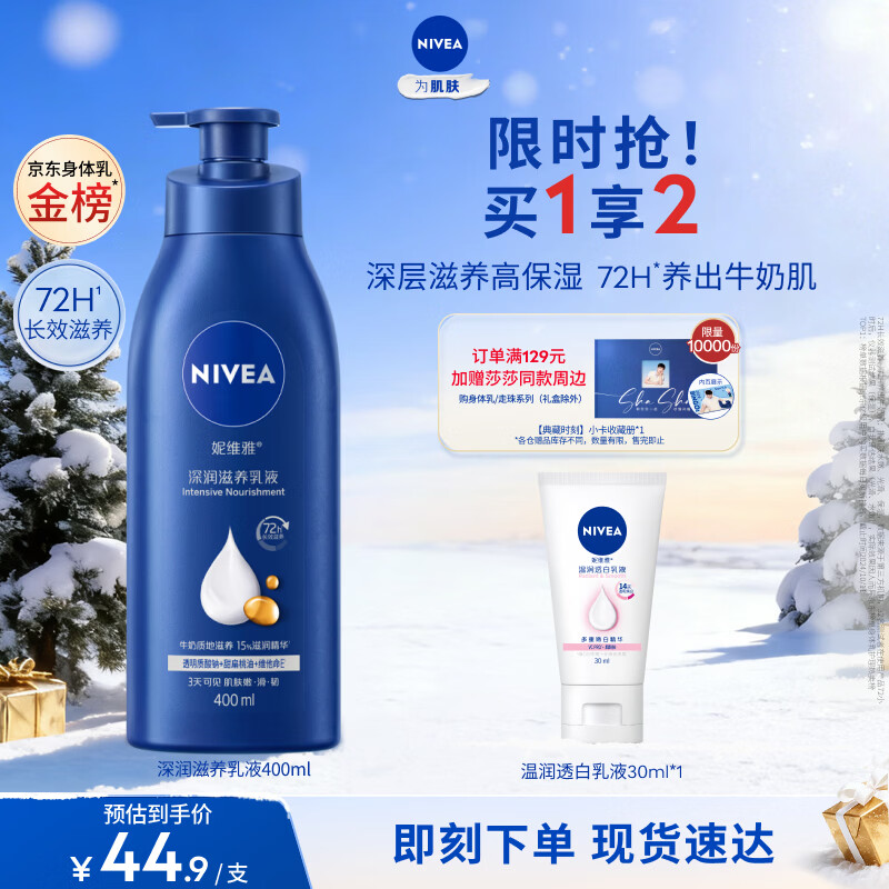 妮维雅(NIVEA)孙颖莎同款保湿滋润防干燥身体乳女士深层润肤乳液400ml新年礼物