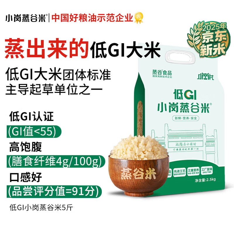 小岗蒸谷米缓慢低升糖低gi大米糖尿人糖友健身主食低脂0钠无蔗糖检出5斤