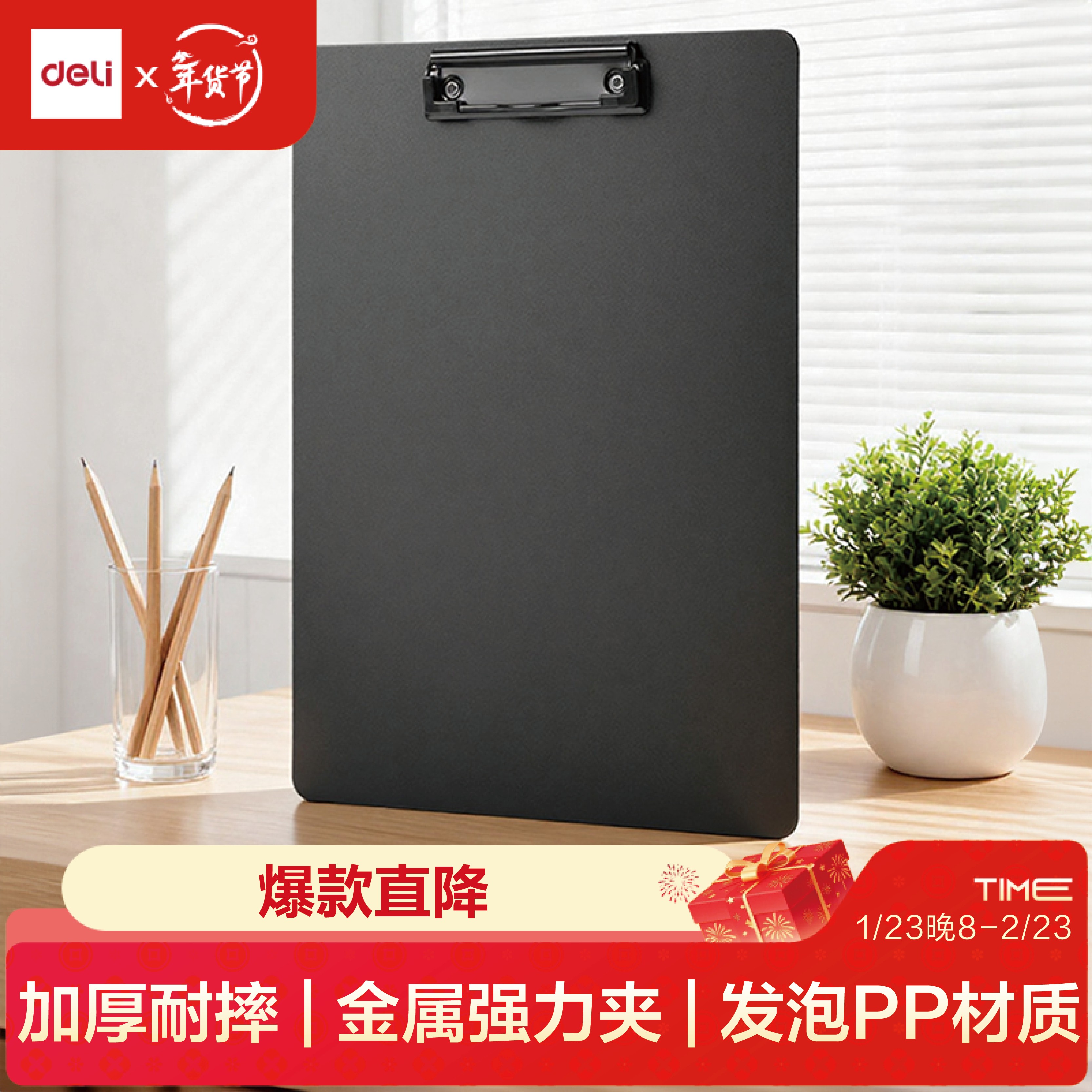 得力(deli)A4书写板夹 文件夹会议资料夹书写板夹写字板办公书写垫板试卷收纳夹 办公学习PE122灰色