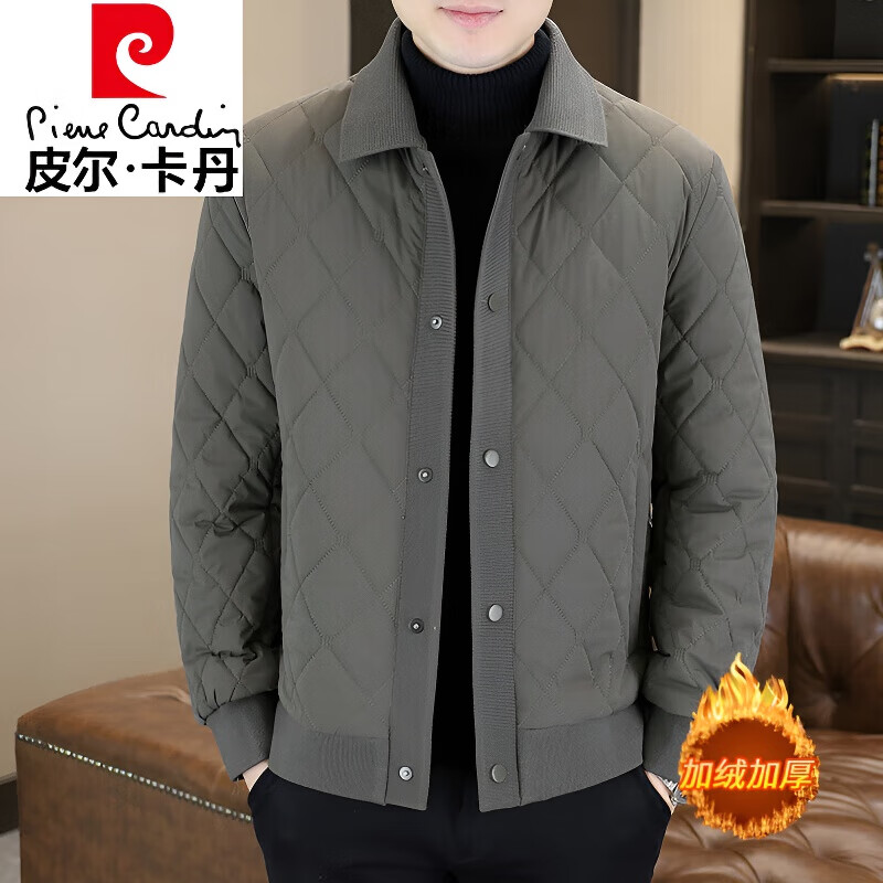 皮尔卡丹(pierre cardin)2025格子棉服夹克男士冬季新品轻薄保暖翻领棉袄时尚休闲棉衣外套 灰色(加棉) 加厚 3XL (建议150-170斤)