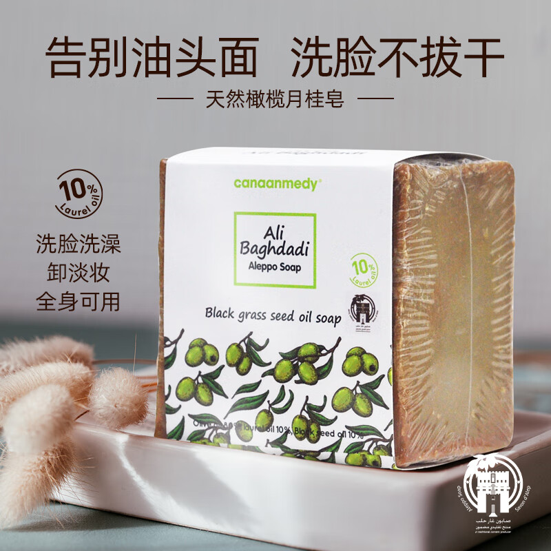 CANAANMEDY土耳其进口黑草种子油橄榄月桂皂手工洁面沐浴卸妆古皂温和洗脸皂 195g