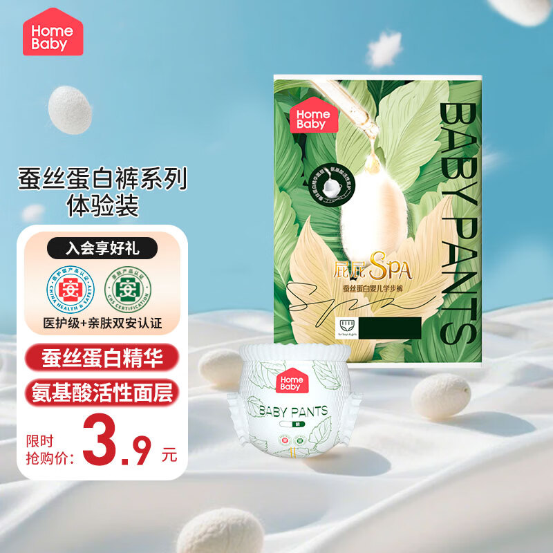 家得宝蚕丝蛋白拉拉裤超薄透气男女宝通用尿不湿柔软裸感成长学步训练裤 蚕丝蛋白拉拉裤体验装XXL码3片