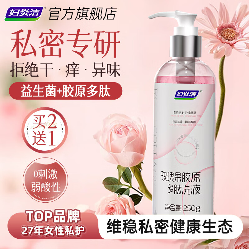 妇炎洁私处护理清洗液玫瑰多肽玻尿酸护理液女性外阴抑菌除异味护理250g