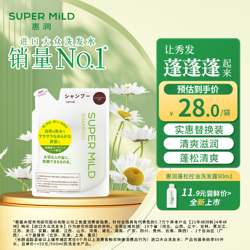 惠润(SUPER MiLD)绿野洗发露替换装400ml 0硅油清爽蓬松洗发水京东自营