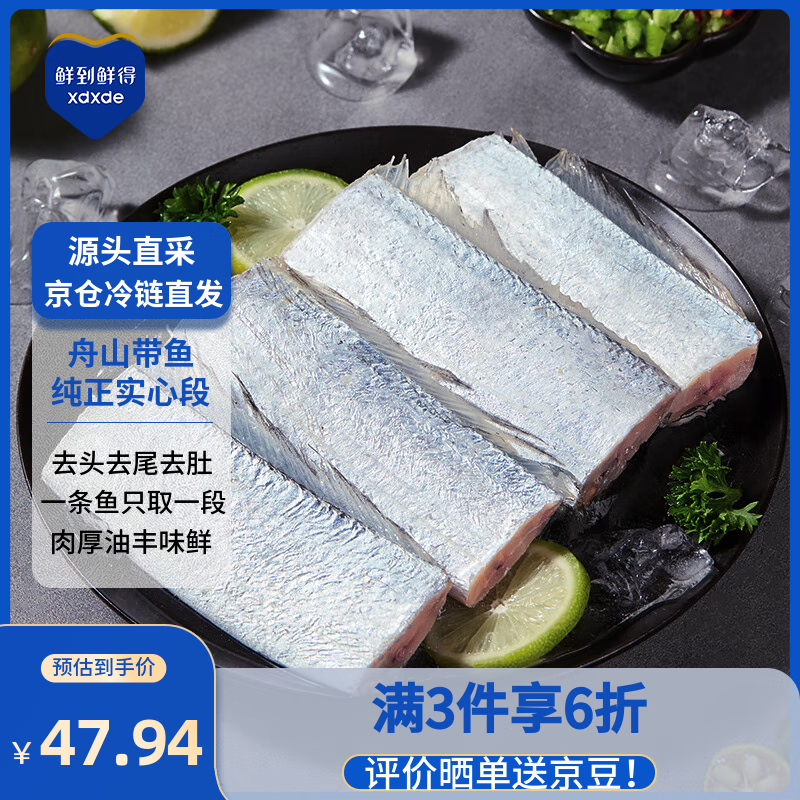 鲜到鲜得 舟山带鱼实心段1400g 精选纯中段 海鱼 生鲜 海鲜水产