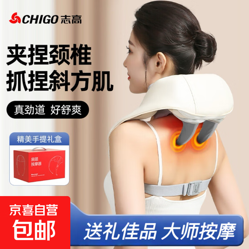 志高(CHIGO)肩颈斜方肌按摩器颈部按摩仪多功能按摩披肩家用揉捏加热颈椎按摩神器生日礼物送爸妈 【升级款精美礼盒装】热敷+揉捏+力度调节