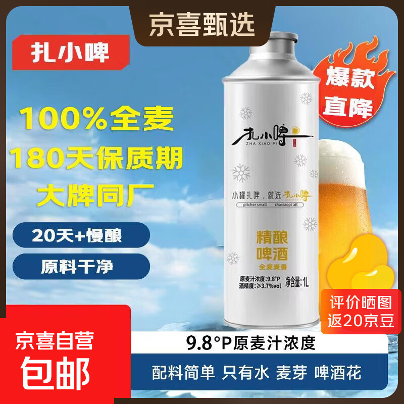 扎小啤全麦麦香9.8°P精酿啤酒华润雪花生产 1L 2瓶