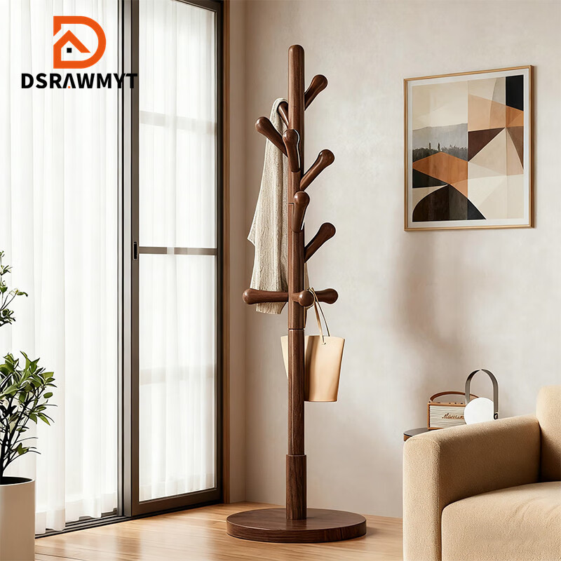 DSRAWMYT 实木衣帽架落地立式 衣架卧室办公挂衣架简约多挂钩晾衣服架子