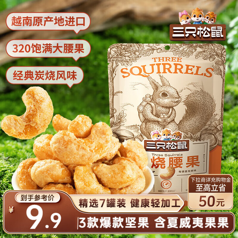 三只松鼠炭烧腰果 每日坚果炒货干果果仁休闲零食 90g/袋