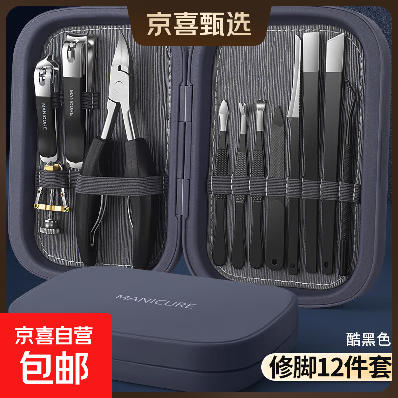 德国甲沟专用指甲刀套装脚趾甲剪修脚刀家用指甲钳专修进口 酷黑色-修脚刀12件套 1件