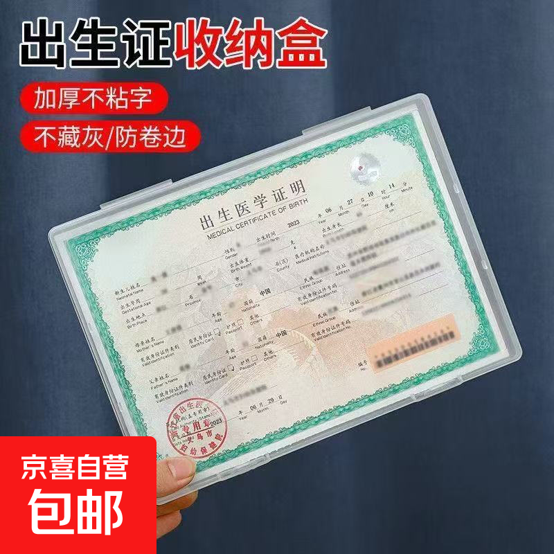 出生证收纳盒证件收纳壳透明不粘字出生证明保护套新生儿证明套 证件收纳盒-A5-透明-PP-1个