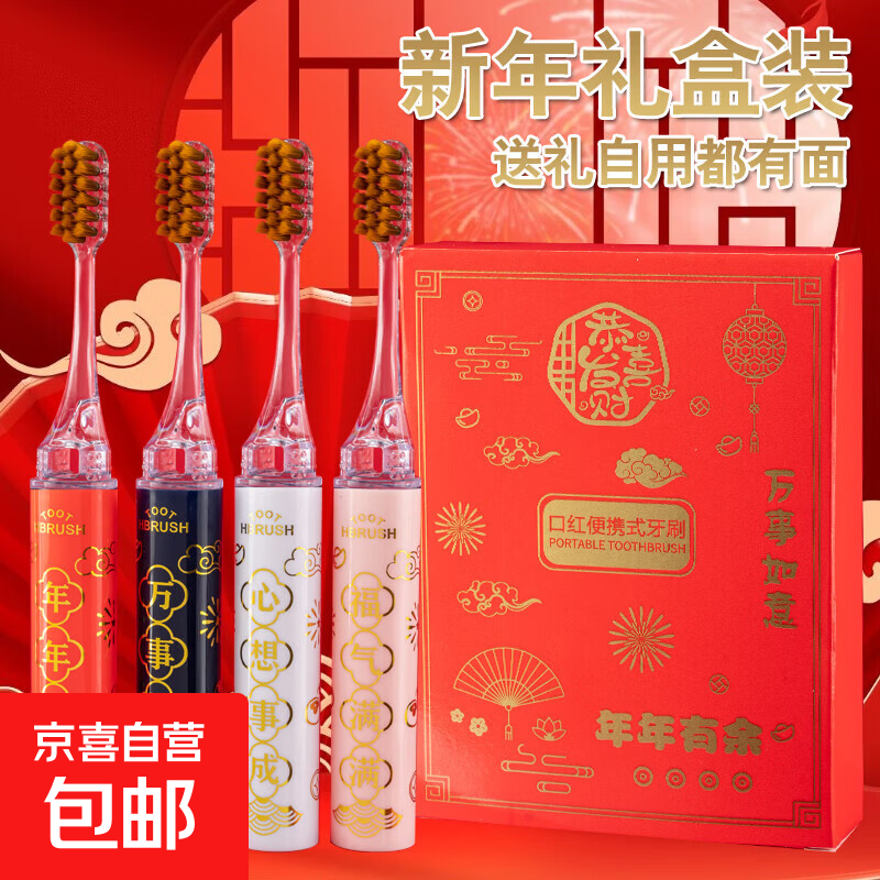 马年新款护龈旅行礼盒装牙刷折叠高档便携式口红软毛成人家用情侣 软毛【马年礼盒】 4支
