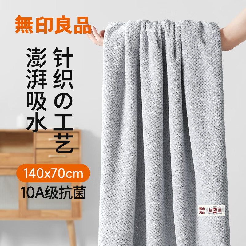 无印良品浴巾10A抗菌亲肤柔软吸水速干A类不易掉毛男士女生洗澡大浴巾浅灰