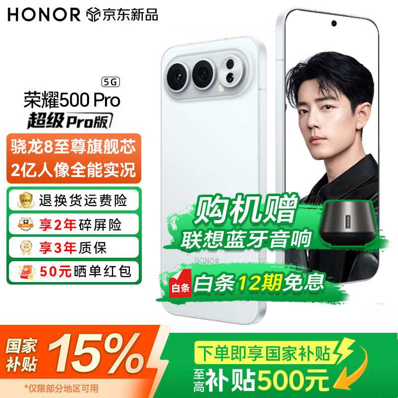 荣耀500 Pro 【国家补贴】5G手机 超级Pro版 骁龙8至尊旗舰芯 2亿人像全能实况 手机荣耀 肖战同款 月光银 16GB+512GB【2年碎屏险+3年质保】 官方标配