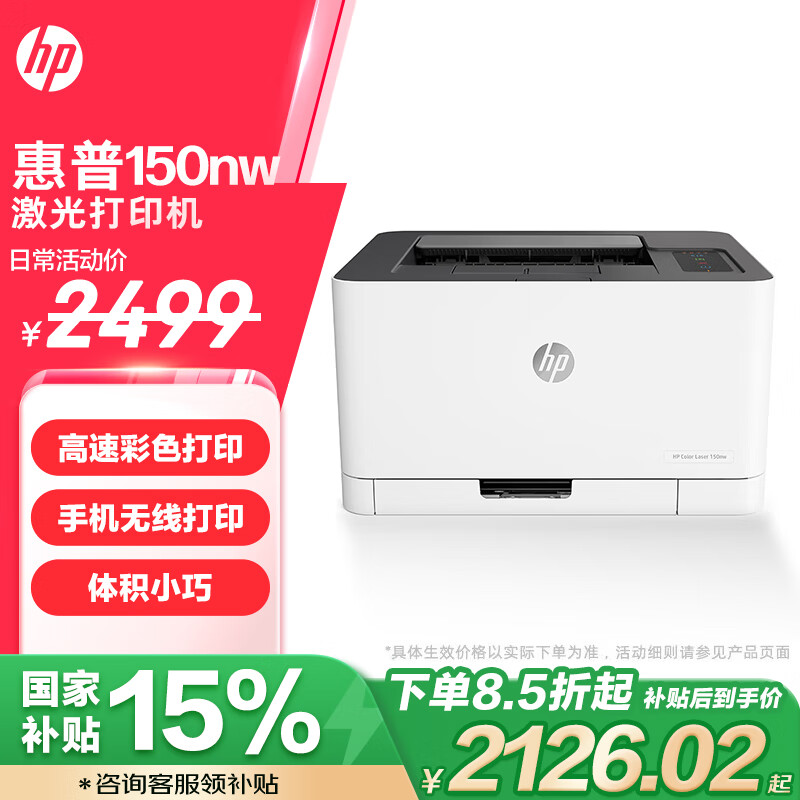 惠普 (HP) 150nw 锐系列彩色家用打印激光打印机 体积小巧无线打印 有线打印