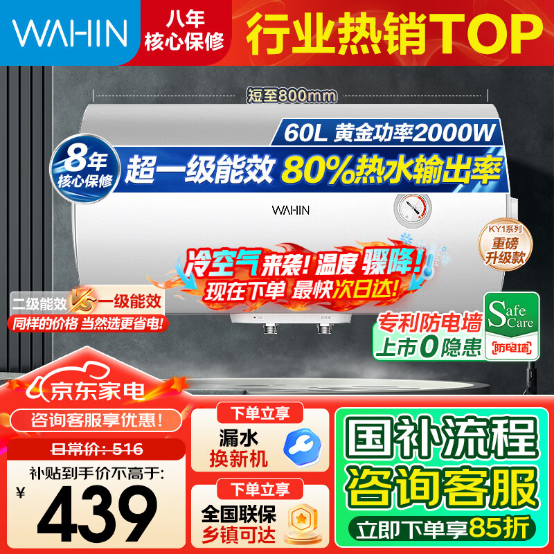 美的出品华凌电热水器 一级能效2000W速热 家用节能省电小户型租房优选 加长防电墙 无缝内胆 60L 一级能效 热销爆款KY1pro