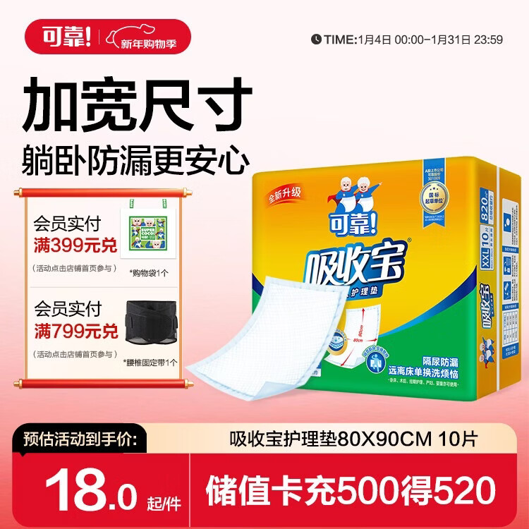 可靠(COCO)吸收宝成人护理垫2XL10片 80*90cm 加大尺寸老年人隔尿垫产褥垫