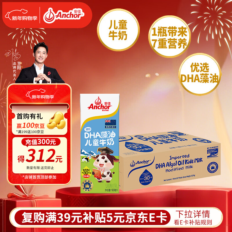 安佳(Anchor)儿童牛奶 190ml*27盒 新西兰原装进口草饲 DHA藻油+益生元