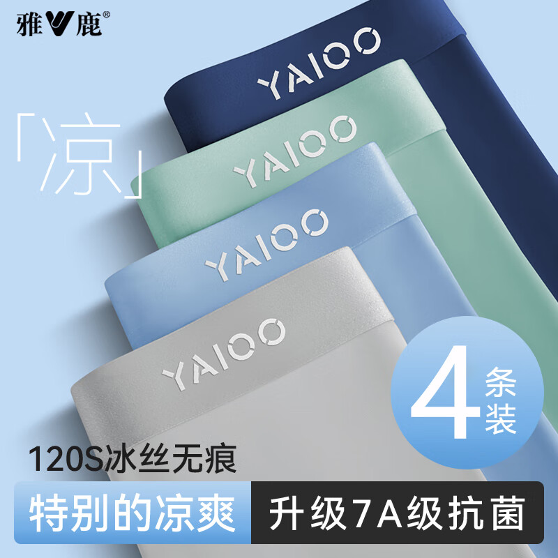 雅鹿4条装冰丝内裤男士无痕平角裤头宽松透气薄款抗菌裆四角短裤衩男 【冰丝透气】4条装 2XL 【建议120-150斤】