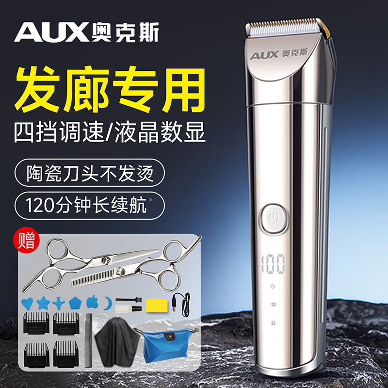 奥克斯(AUX)剃头理发器家用理发店成人儿童电动剪发器电推子理发剃头刀陶瓷刀头发廊级超长续航 标配+双钢剪刀【强劲动力/静音不卡发】