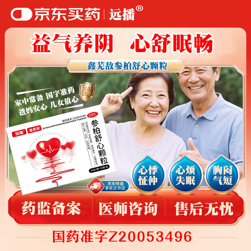 [远播]参柏舒心颗粒 14g*6袋 3盒装 活血化瘀养阴益气定悸除烦 用于心悸怔仲心烦失眠心慌胸闷 正品OTC准字认证 长期反复 心慌心悸