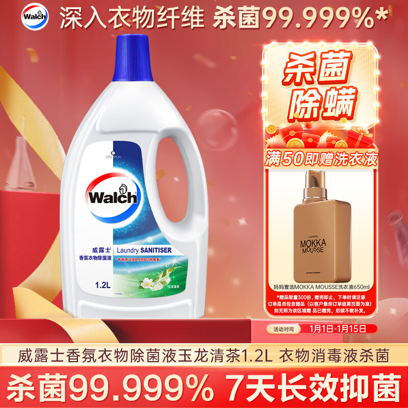 威露士香氛衣物除菌液玉龙清茶1.2L 衣物消毒液杀菌99.999% 7天长效抑菌