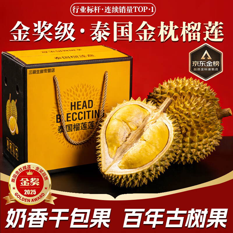 晟容果蔬金枕榴莲【顺丰/JD-多地次日达】泰国新鲜榴莲金枕头巴掌生鲜水果 5-6斤【包4-5房】甄选果 精选老树果丨出肉率更高