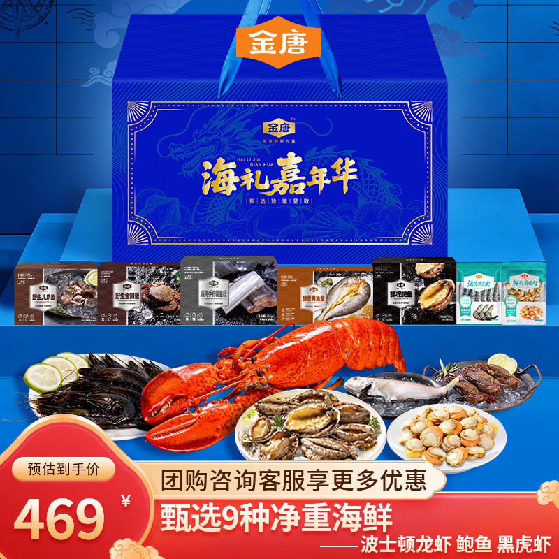 【现货】金唐海鲜礼盒大礼包9种7斤 含波士顿龙虾鲍鱼企业年货礼品生鲜源头直发