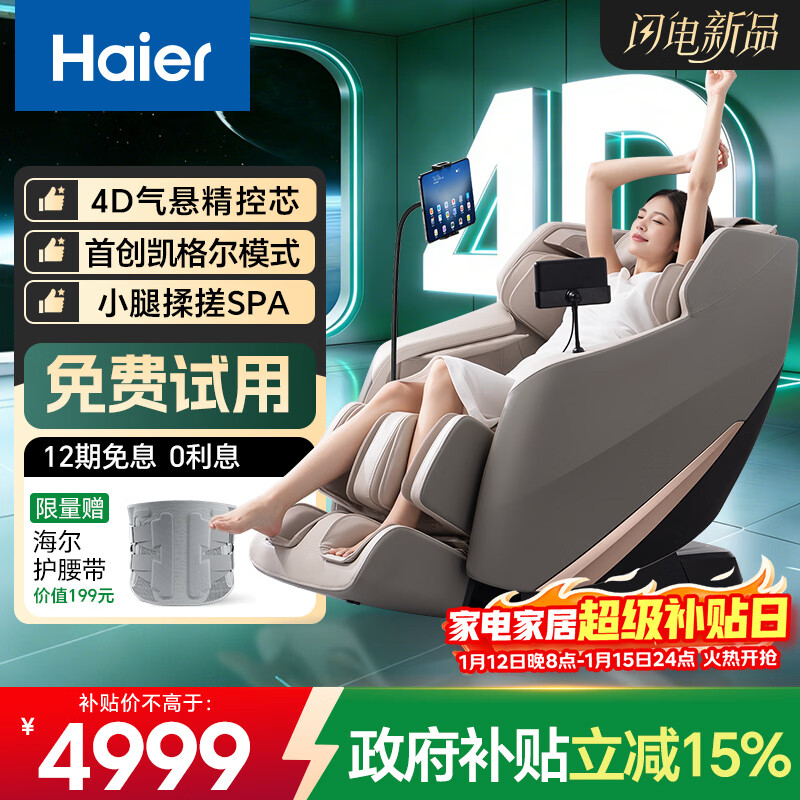 海尔(Haier)按摩椅家用全身太空舱零重力2025十大品牌电动智能按摩沙发椅摇摇椅生日礼物实用送父母H5-103HU1