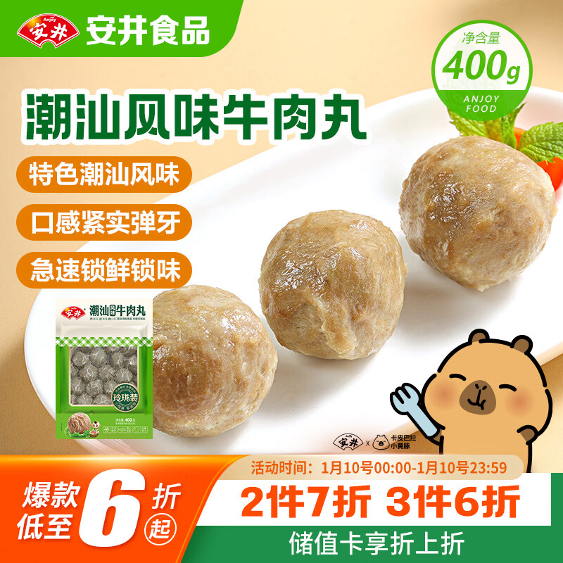 安井潮汕风味牛肉丸 400g 1包 火锅食材麻辣烫关东煮空气炸锅丸子