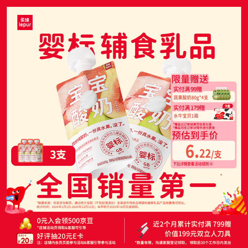 乐纯婴标宝宝酸奶无花果50g*3支 常温辅食0添加0蔗糖儿童零食(6个月+)