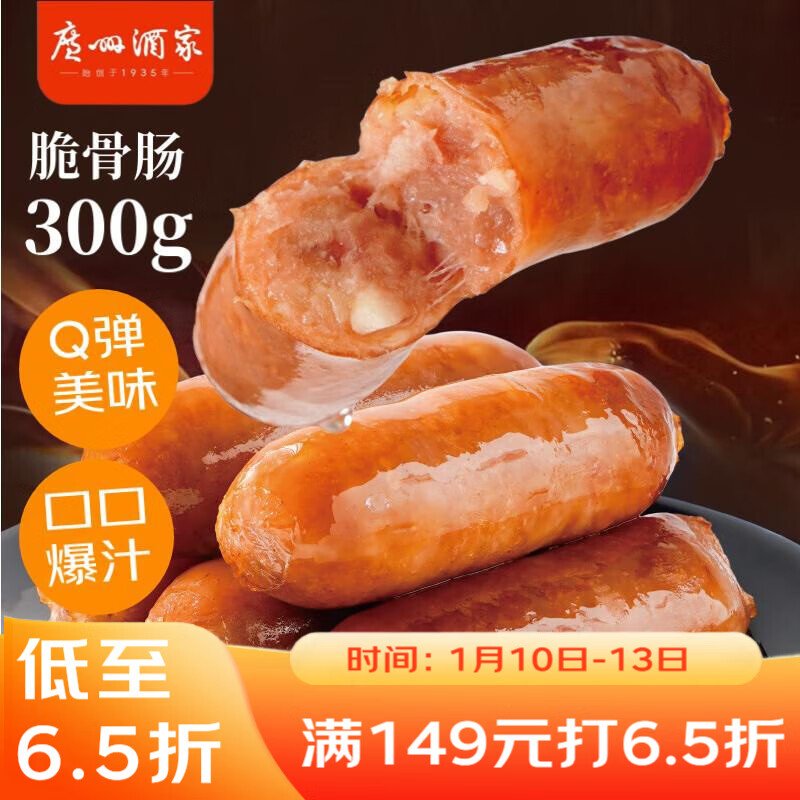 广州酒家 脆骨肠300g 烤肠 热狗火腿肠香肠 儿童早餐 烧烤 空气炸锅 夜宵