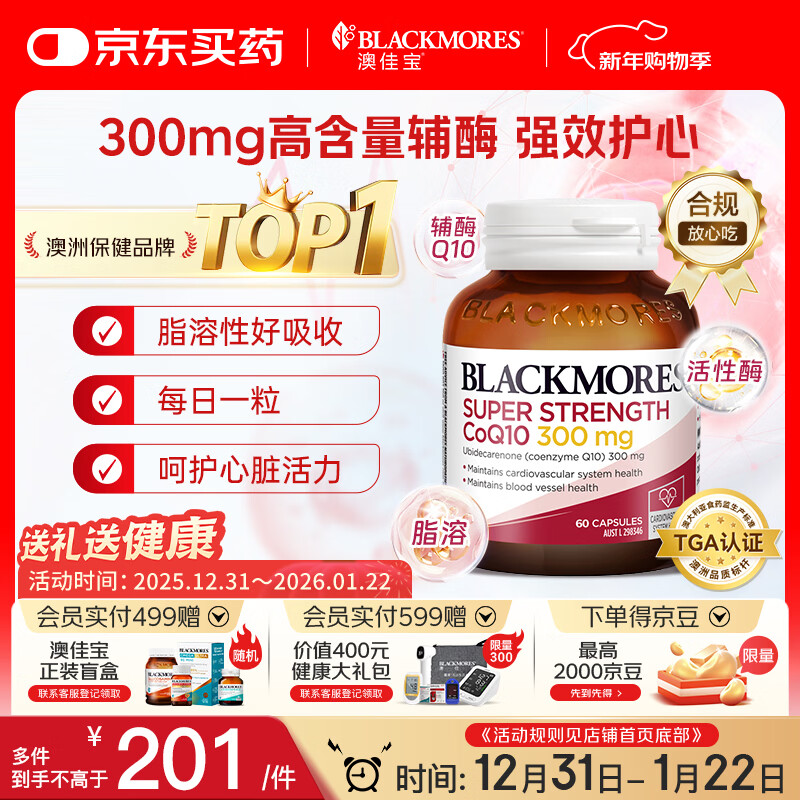 澳佳宝Blackmores辅酶q10软胶囊300mg 保护心脏心脑血管 60粒/瓶 送礼