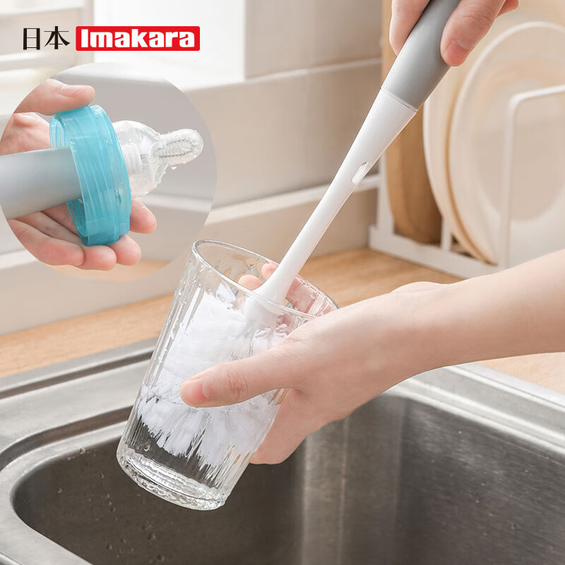 Imakara日本洗杯子神器婴儿奶瓶刷无死角清洁水杯杯盖缝隙刷洗杯刷奶嘴刷 两用杯刷【1个装】