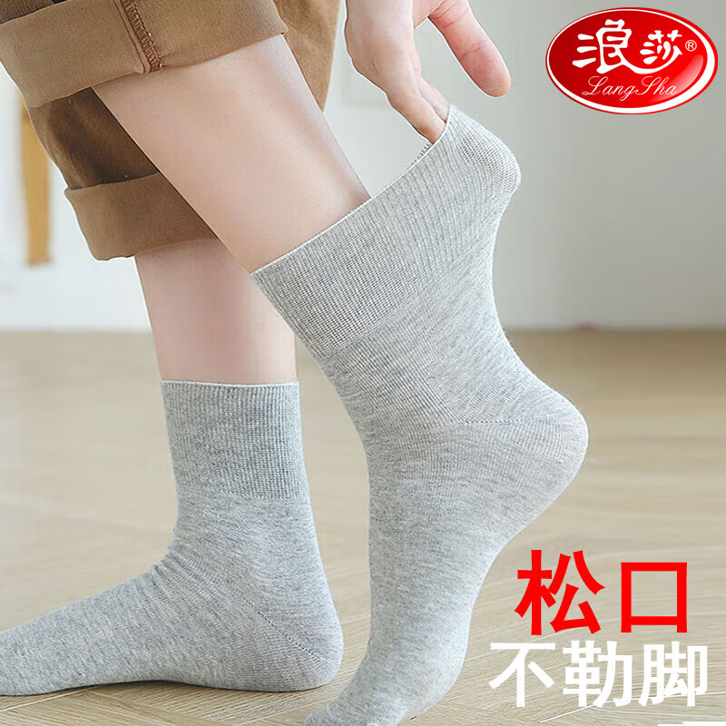 浪莎纯棉松口女袜中老年宽松袜口妈妈袜子冬季孕妇产后月子袜全棉 浅灰 2双 均码 100%棉松口女袜