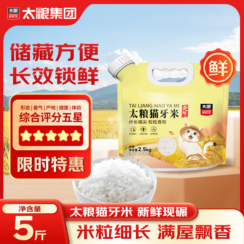 太粮元气猫牙米5斤 籼米南方大米长粒米 便携手提袋 2025年新米