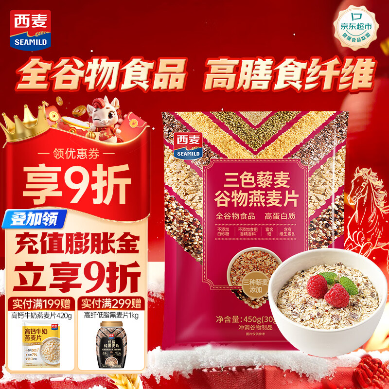 西麦三色藜麦混合谷物燕麦片450g 营养早餐冲饮谷物无额外添加蔗糖