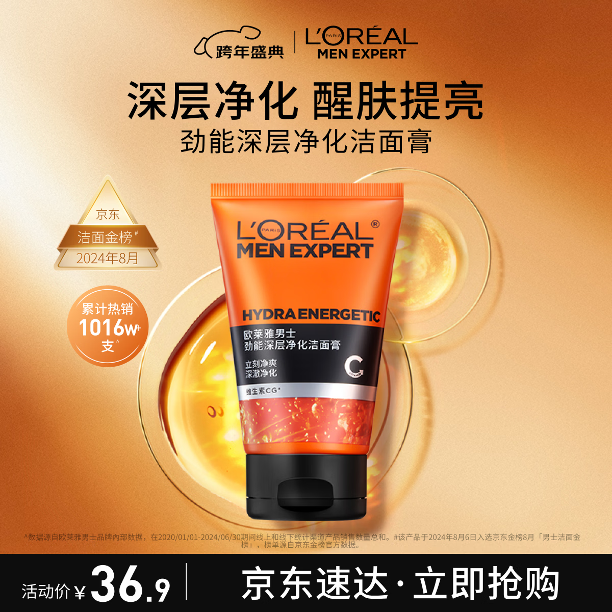 欧莱雅男士劲能深层净化洁面膏100ml洗面奶保湿去角质护肤品新年礼物