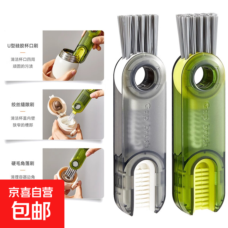 三合一杯刷水杯清洁刷洗杯子神器多功能清洁吸管杯盖清洗涮多功能 绿色 灰色组合装 无规格