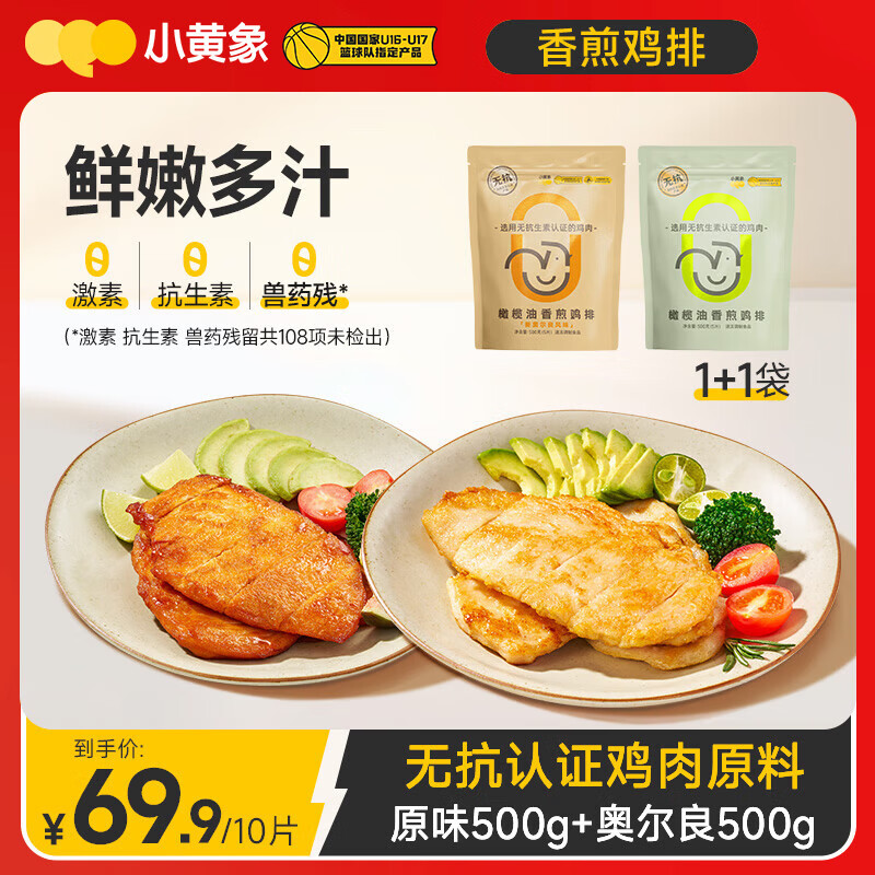 小黄象 香煎鸡排1000g(原味500g+奥尔良500g)鸡胸肉高蛋白轻食鸡肉年货