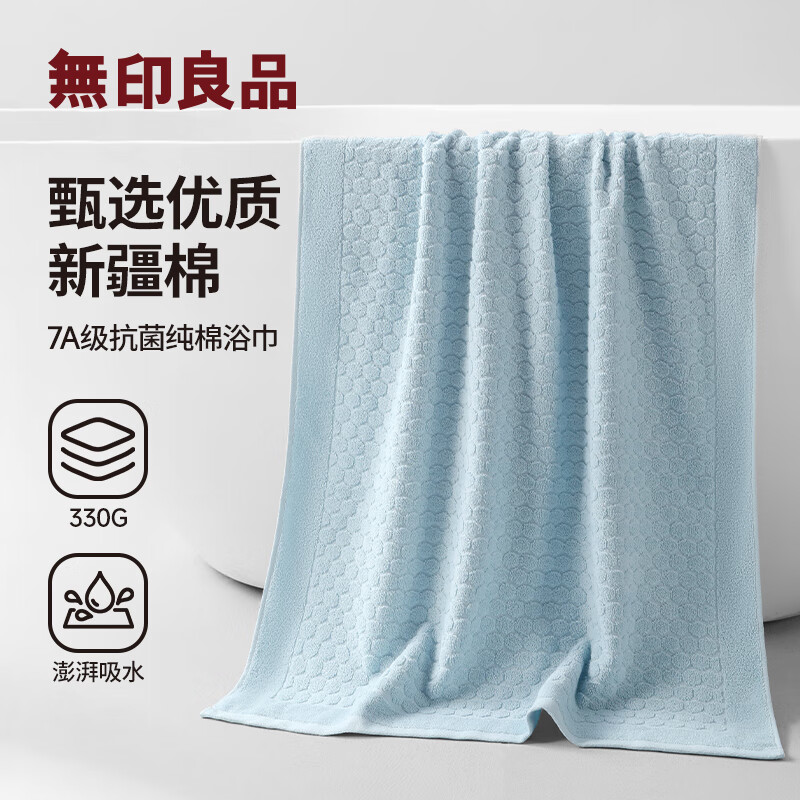 无印良品浴巾7A级抗菌100%纯棉亲肤不易掉毛新疆棉强吸水男士大浴巾蓝色