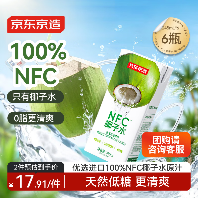 京东京造100%NFC椰子水245ml*6盒天然电解质椰汁果汁无添加糖泰国