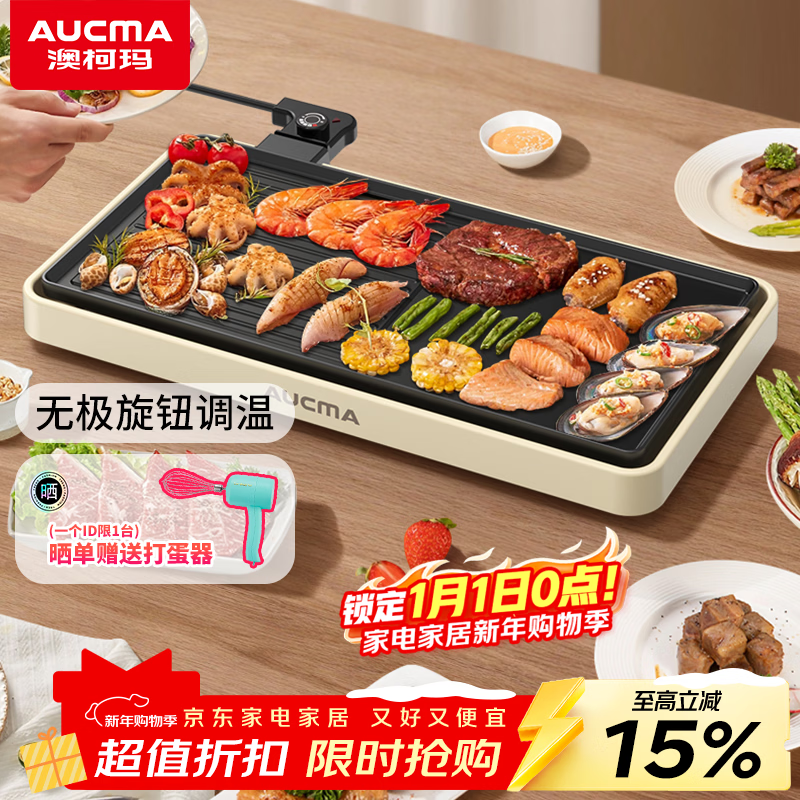 澳柯玛(AUCMA)电烧烤炉 家用多功能锅韩式铁板烧烤肉机轻烟电烤盘烤肉炉烤肉锅 不粘电烤炉JJ15-HT227F