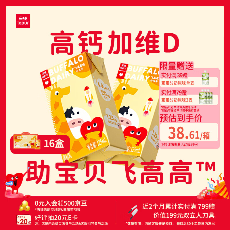 乐纯飞高高的小水牛125ml*16盒 4g/盒蛋白高钙富含维生素D3水牛牛奶