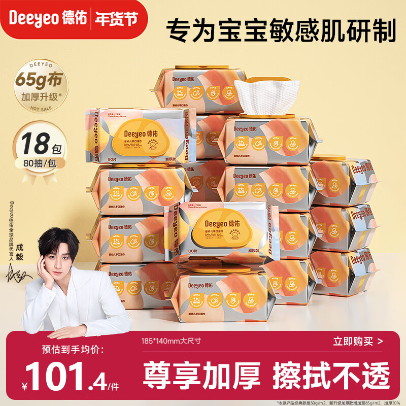 德佑婴儿手口湿巾 手口专用加厚尊享版 新生儿湿纸巾大包囤货80抽18包