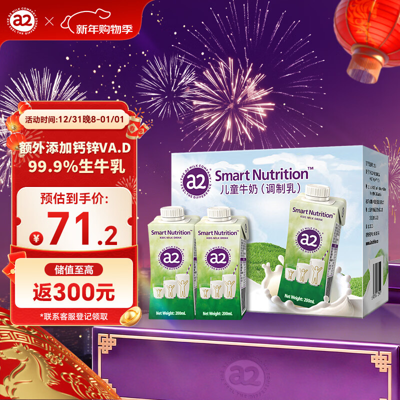 a2牛奶 澳州进口 儿童牛奶 珍贵A2型蛋白 含钙锌VA.D 200ml*6盒