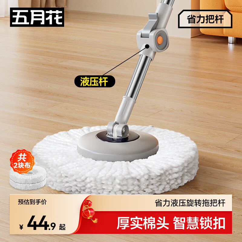 五月花旋转拖把杆共2布加粗拖把盘尘推杆圆拖把头配件杆盘套装JJ-PJ137