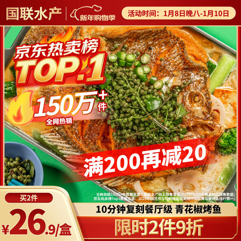 GUO LIAN国联小霸龙青花椒烤鱼2斤2-3人份烧烤加热即食夜宵方便菜预制菜
