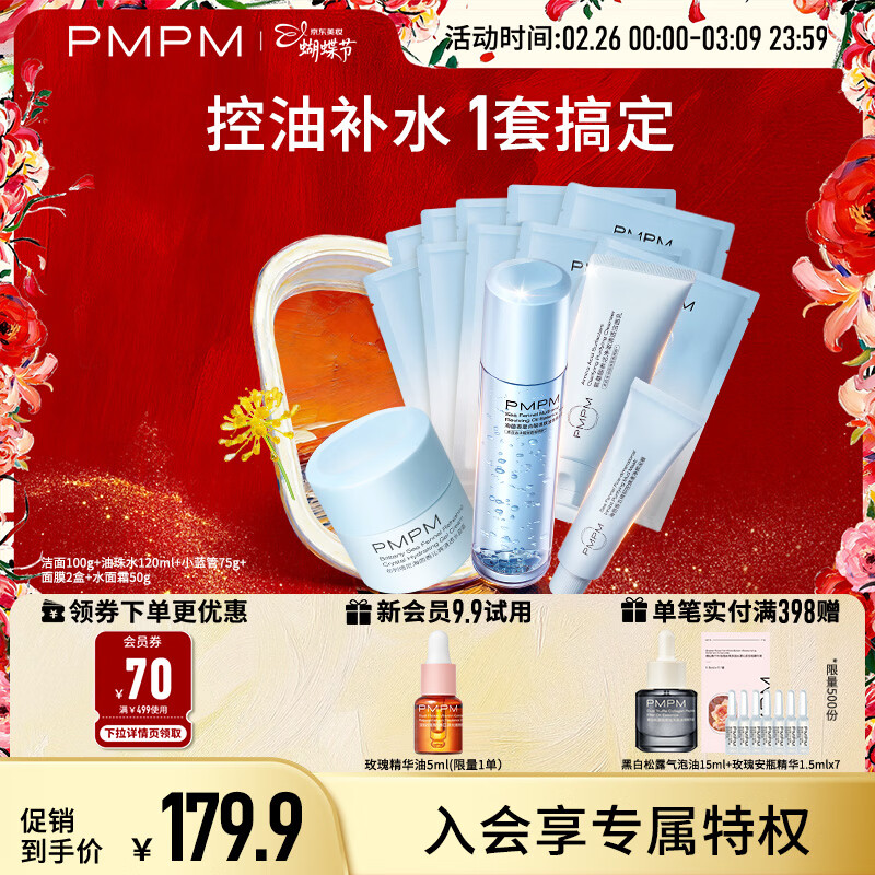 PMPM洁面100g+油珠水120ml+小蓝管75g+面膜10片+水面霜50g 控油保湿