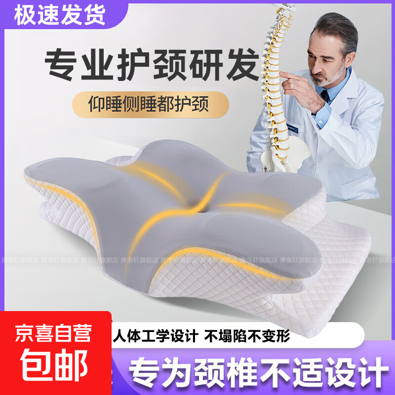 蝶形护颈枕颈椎枕记忆枕慢回弹人体工学多功能侧睡枕头美容枕 【4D人体工学蝶形护颈枕】 单只装 62*41*(11-13)cm